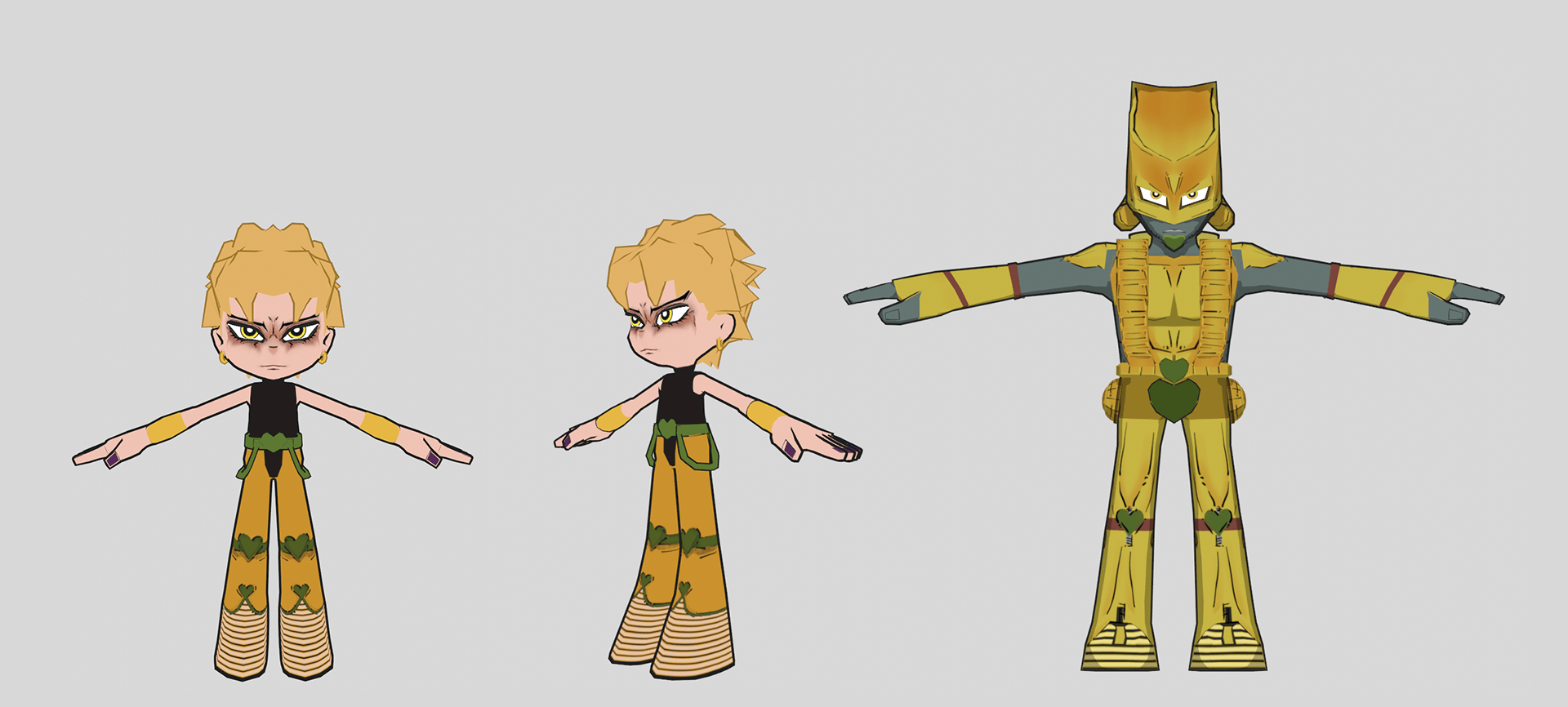 《PSG-JOJO&DIO》是我尝试以《JOJO的奇妙冒险》的人设结合《吊带袜天使》的美漫风格,保持《吊带袜天使》的快节奏和动作演出,并以三渲二的形式制作的同人动画。